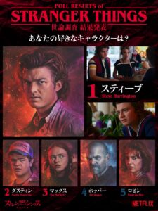ダスティンはファン人気投票全キャラで2位、メイン4人中ではだんとつ1位だぞ舐めんなよw